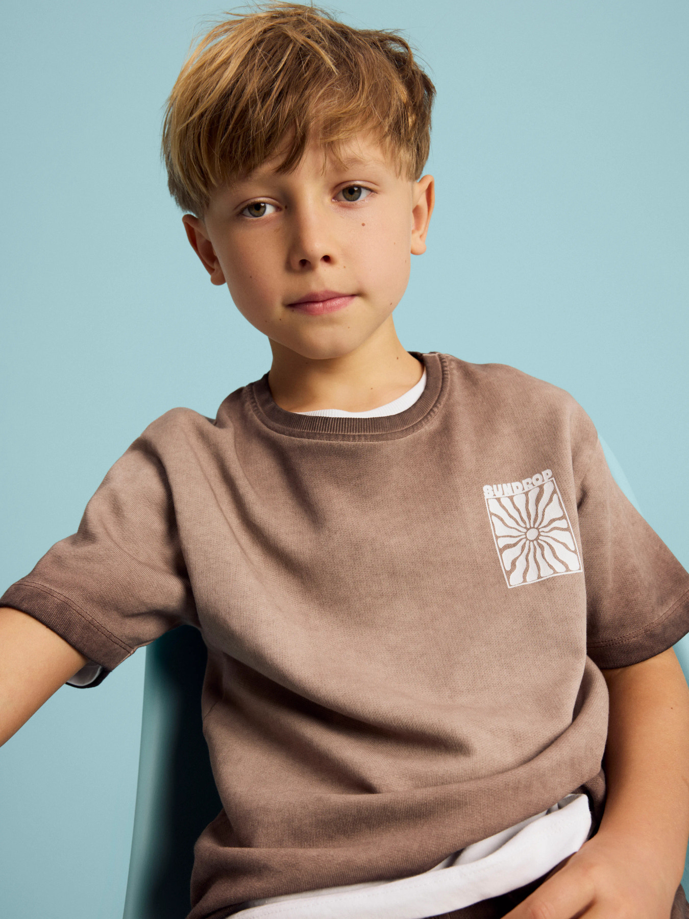 En blød og komfortabel sweat t-shirt, med rund hals, korte ærmer og et blødt pigmentprint, der giver et let og behageligt udtryk. Regular fit der sikrer god pasform til hverdagsbrug.