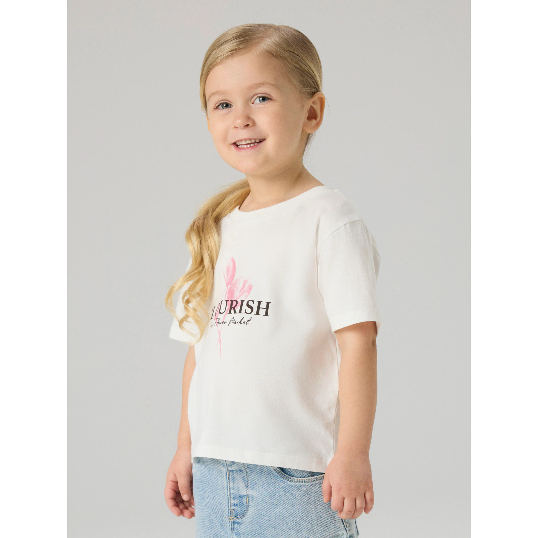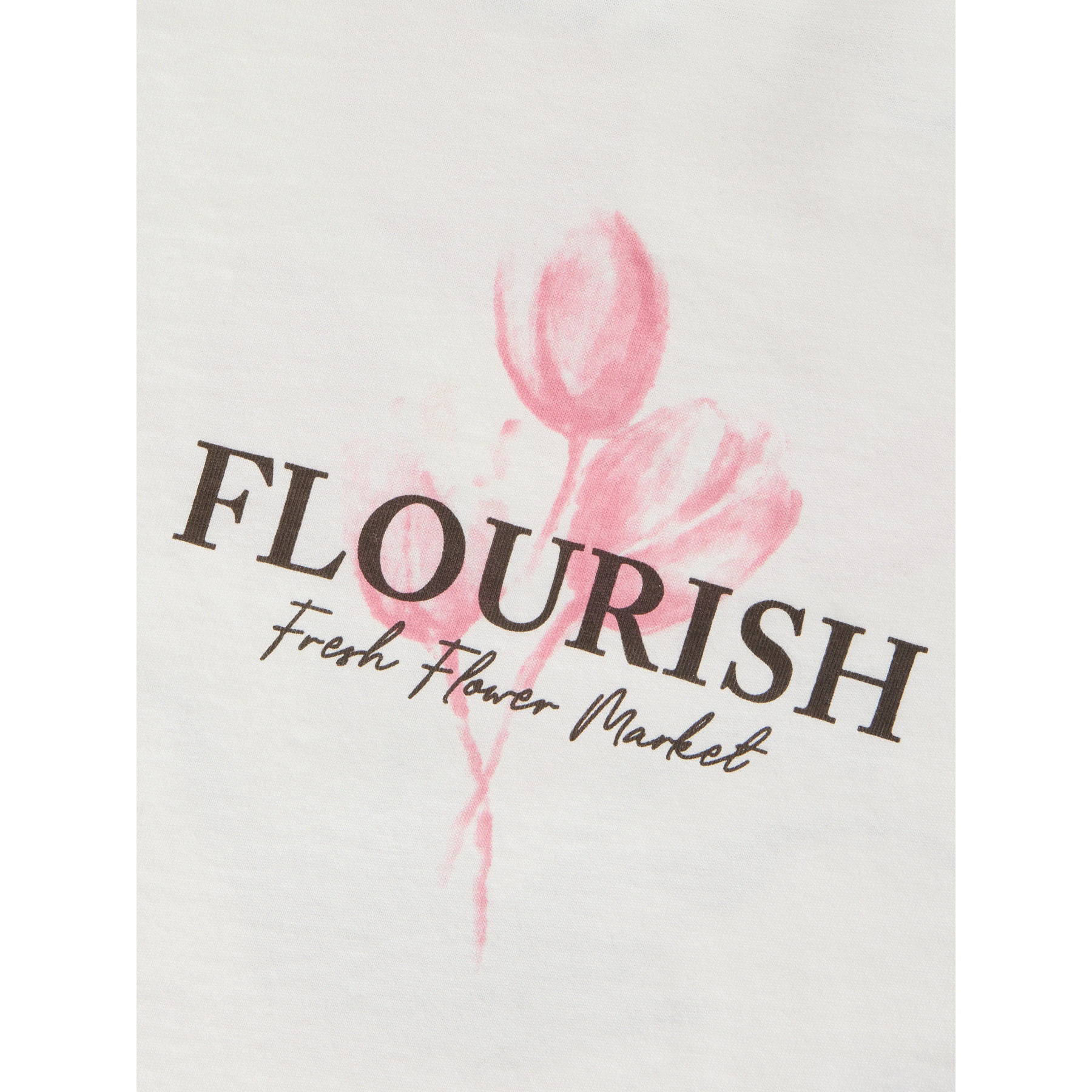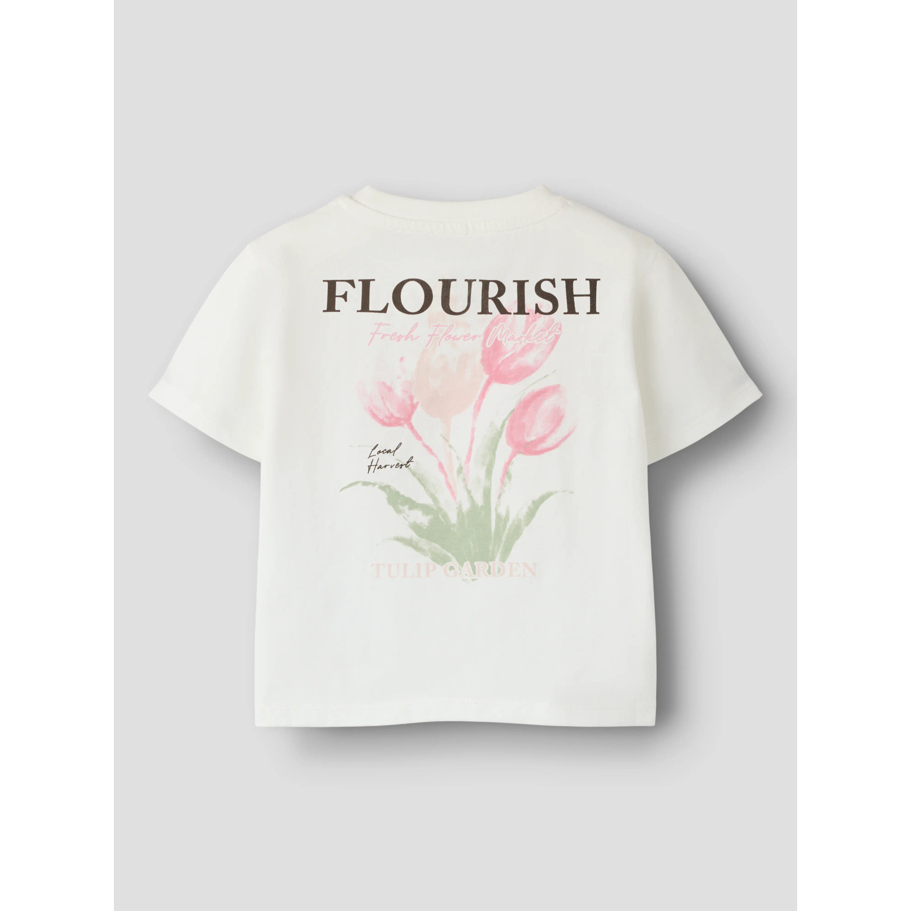 En t-shirt med rund hals og korte ærmer, et fint blomsterprint og teksten 'FLOURISH Fresh Flower Market' på både front og ryg. Den er lavet i blød og strækbar jersey af økologisk bomuld, som giver en behagelig følelse og god bevægelsesfrihed. Pigmentprintet sikrer en blød overflade.