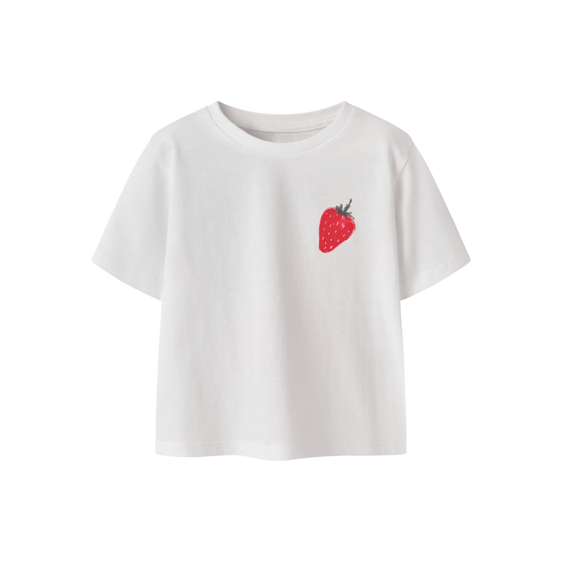 Denne T-shirt har et charmerende jordbærprint på brystet, der giver et friskt udtryk. Ryggen prydes af et større 'Farmer's Market' print med flere jordbær, som tilføjer en legende detalje. Fremstillet i blød og strækbar jerseykvalitet med rund hals og korte ærmer, sikrer den god komfort og bevægelsesfrihed i hverdagen.