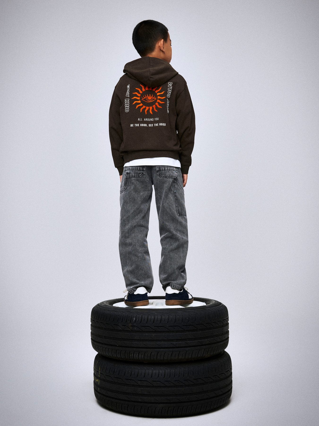 Seje jeans fra Name it i "tapered" fit, hvor bukserne er bredest og baggy for oven og bliver mere tætsiddende under knæene. Bukserne har elastikkant i taljen, hvor der også er mulighed for at justere størrelsen indvendigt. Bukserne har et fedt slidt look der er med til at give et cool look.