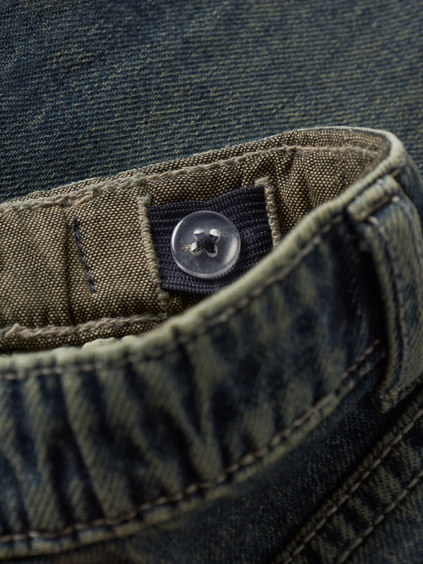 Seje jeans fra Name it i "tapered" fit, hvor bukserne er bredest og baggy for oven og bliver mere tætsiddende under knæene. Bukserne har blød elastikkant i taljen, hvor der også er mulighed for at justere størrelsen indvendigt. Der er flere udvendige lommer på bukserne og en hammerstrop, der er med til at give et cool look.