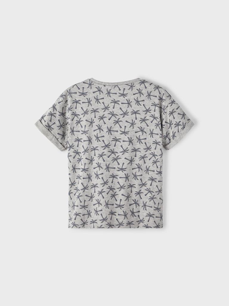 Fed kortærmet t-shirt fra Name It med print af palmer over det hele, rund hals og opsmøg.