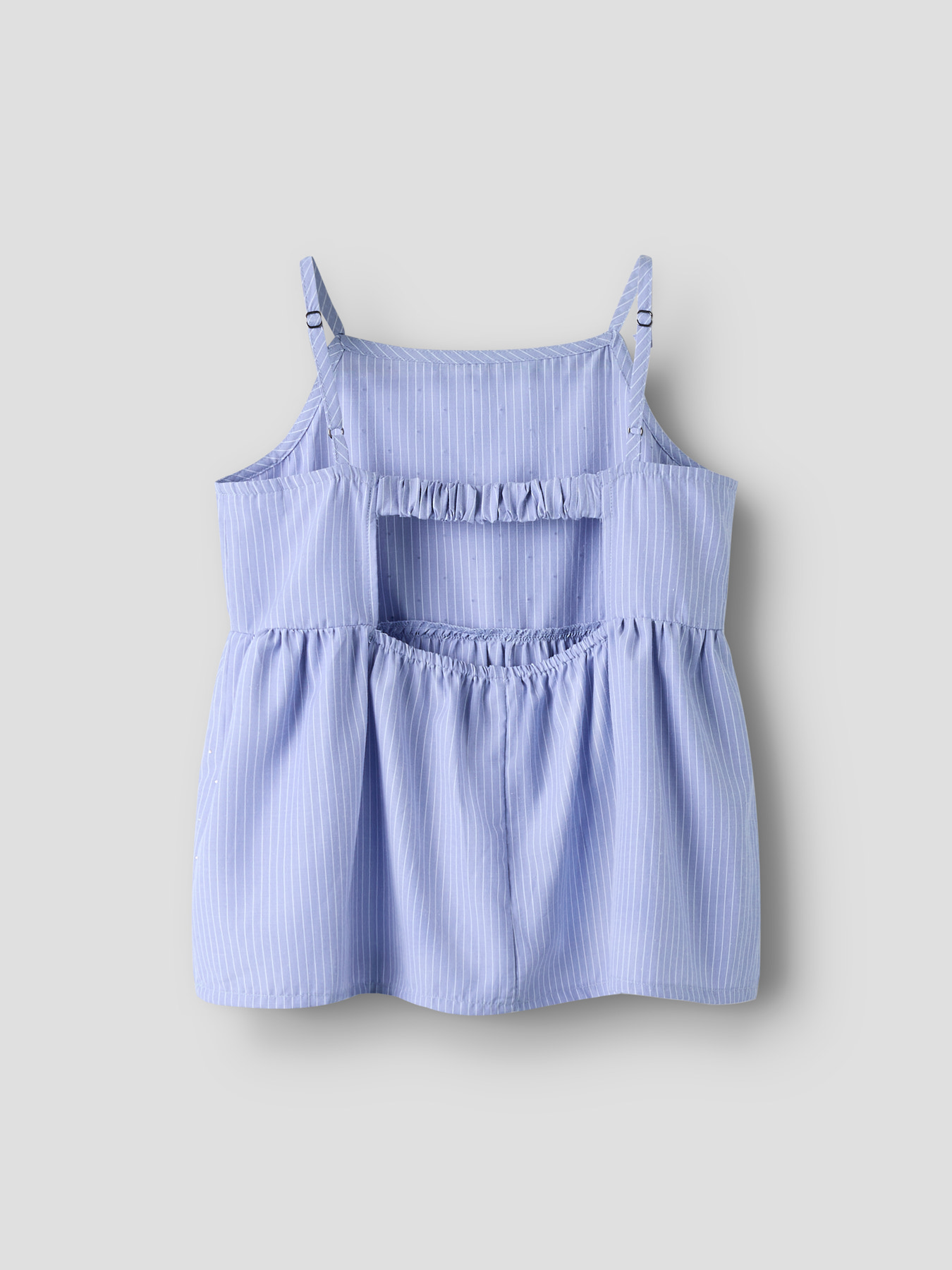Toppen er lavet i let poplin med en glat og ensartet overflade, der giver et skarpt og stilrent udtryk. Den har firkantet udskæring, justerbare stropper og en klassisk regular fit for en behagelig pasform. Fine rhinsten tilfører et elegant og funklende touch.