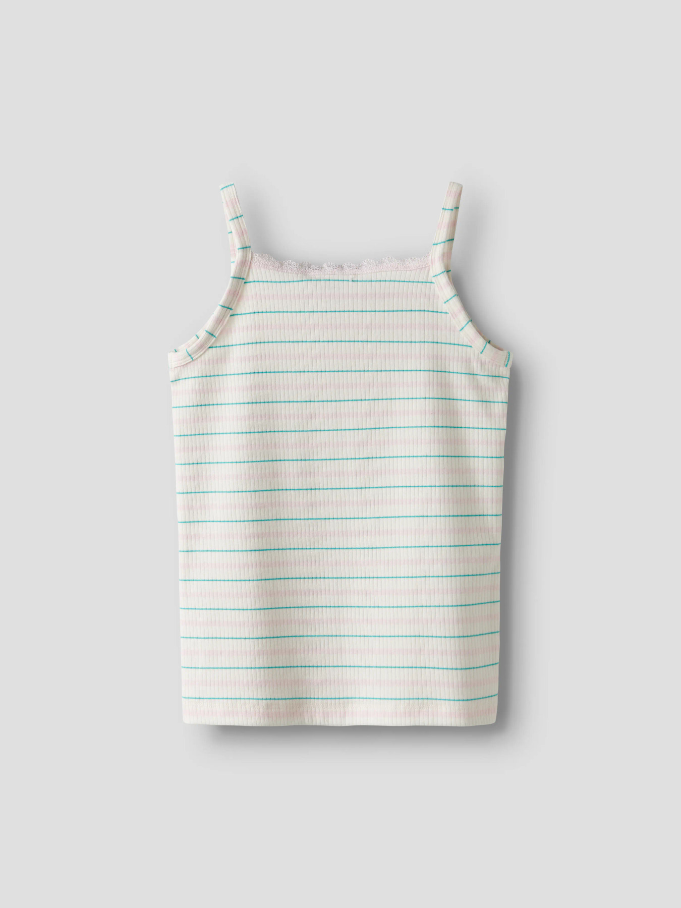 Top der er lavet i ribstrikkede kvalitet med lodret struktur giver et tidløst look og god elasticitet for optimal komfort. Toppen har firkantet udskæring, er ærmeløs og har fine blondedetaljer, der tilføjer et feminint touch. Den tætsiddende pasform fuldender det moderne udtryk.