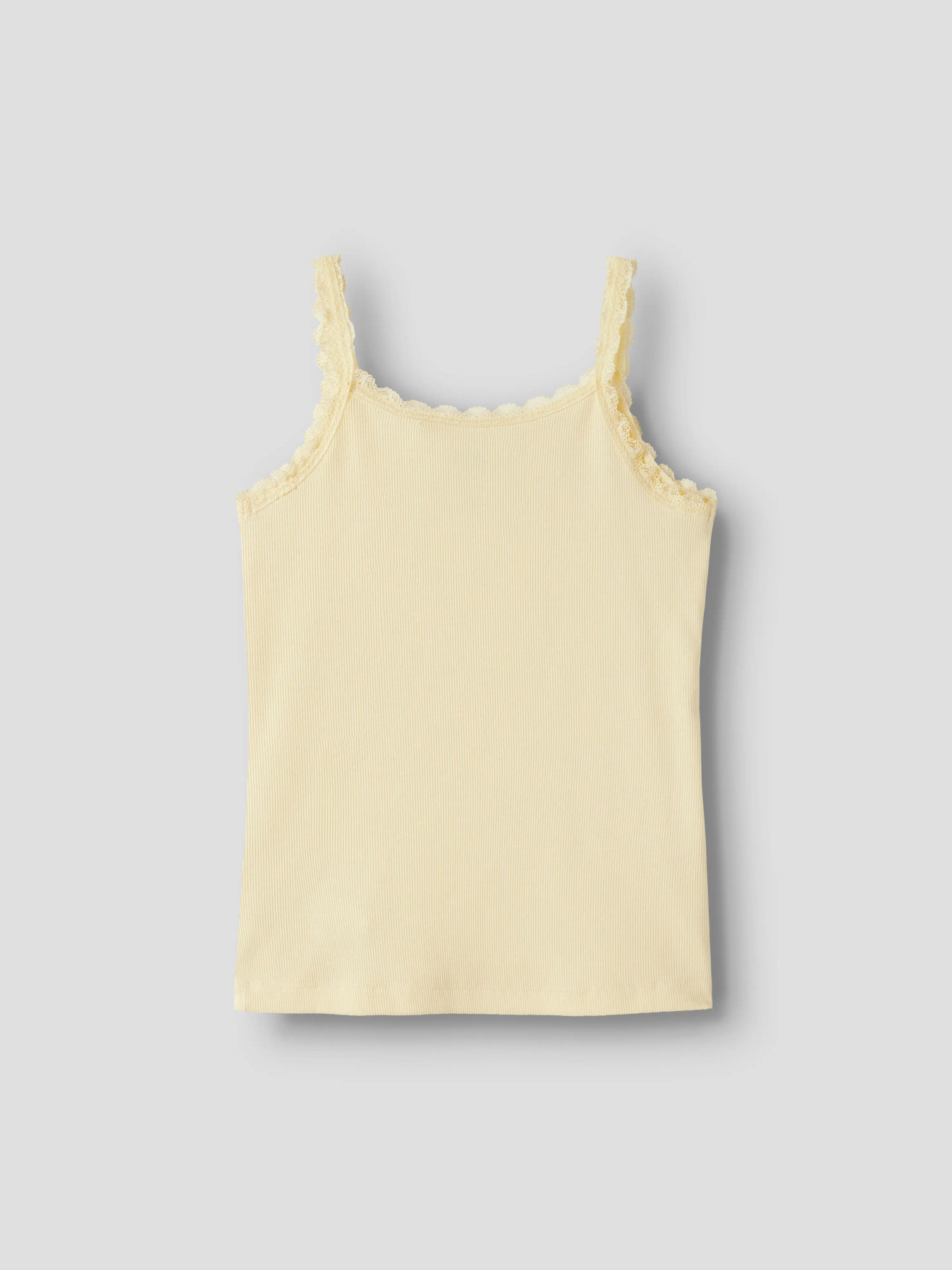 Tanktop i ribstrik med god elasticitet og et tidløst look. Den har rund hals, er ærmeløs og har fine blonde-detaljer, hvilket giver et sødt og stilfuldt touch i en tætsiddende slim fit.