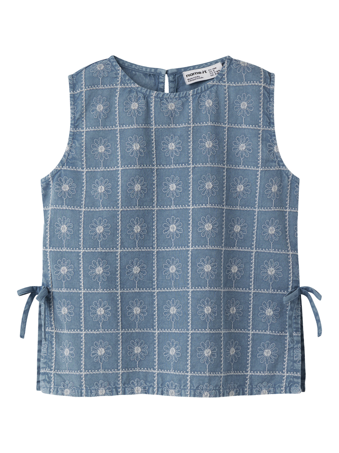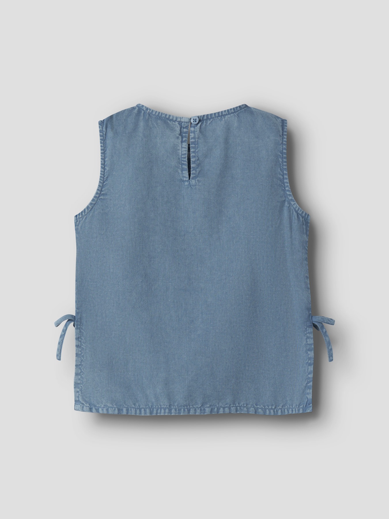 Cool top, der passer perfekt til både hverdag og særlige lejligheder. Fremstillet i blød og let chambray med et klassisk og tidløst udtryk. Designet med firkantet hals, ærmeløst snit, knap- og løkkelukning, sløjfe detalje, fine broderier og en behagelig regular fit.