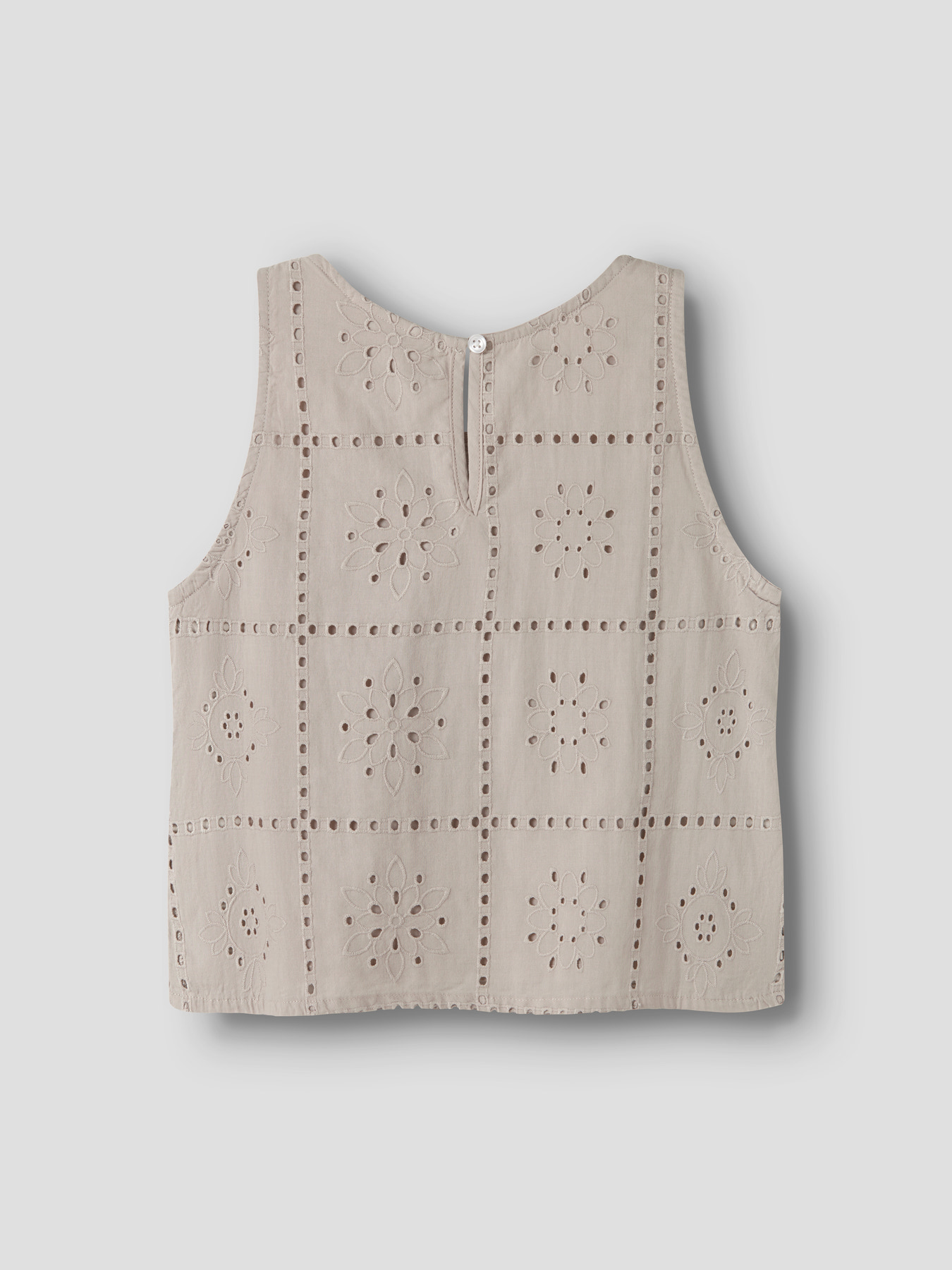 Opdater dit barns garderobe med en fin top, der passer til både hverdag og særlige lejligheder. Den er lavet i vævet stof med et klassisk krydsmønster og en let struktureret overflade. Designet har rund hals, ærmeløst snit, knap- og løkkelukning samt fine blondedetaljer. Regular fit.