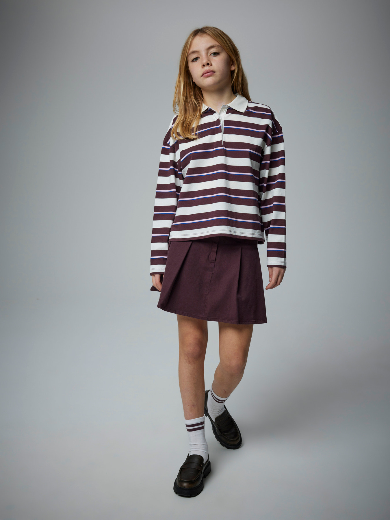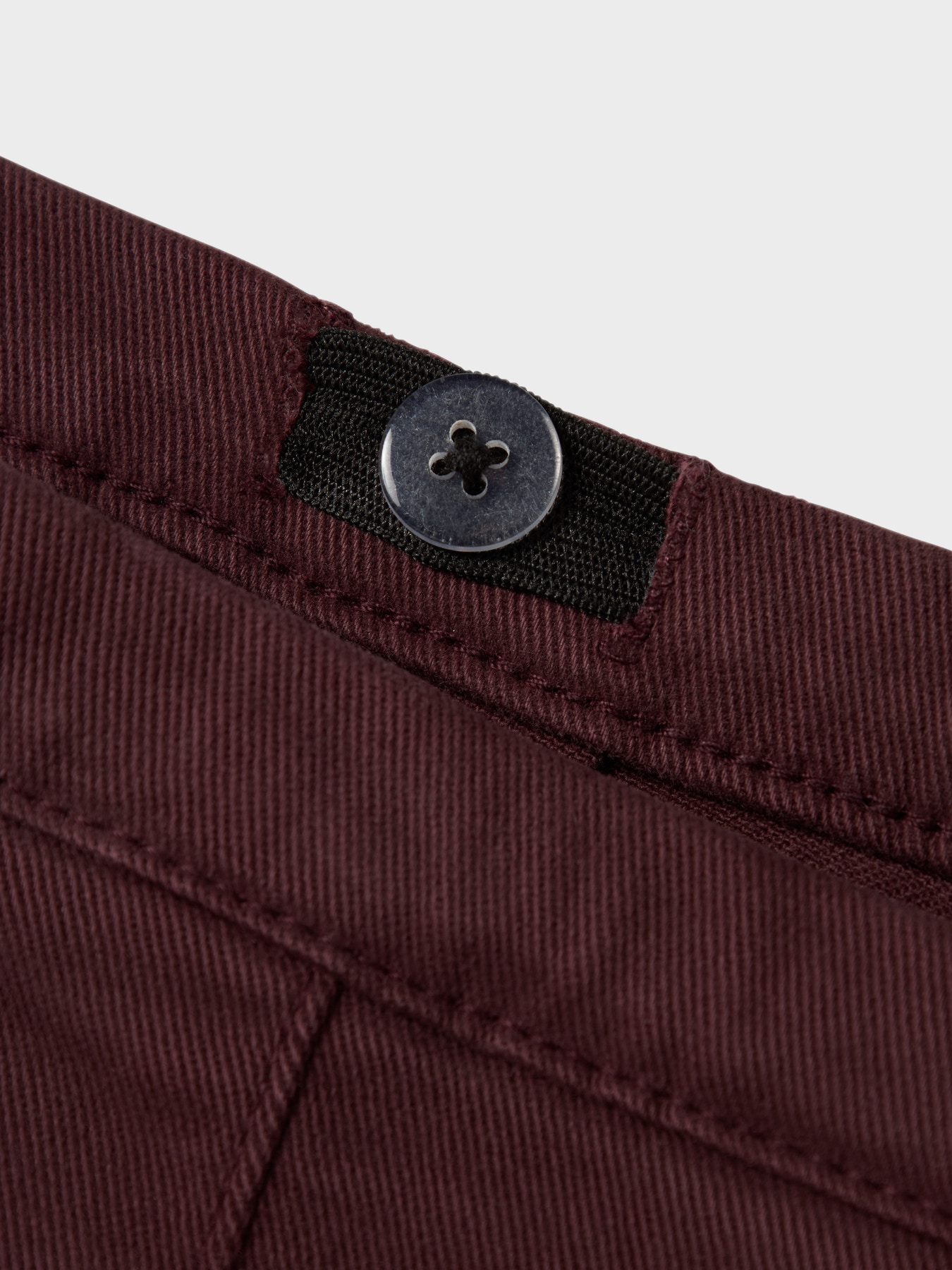 Mega cool twill nederdel fra Name it. Den er i flot bordeaux farve med læg som giver et sejt look. Den er med knap og lynlås lukning i siden samt mulighed for at justere størrelsen indvendig.