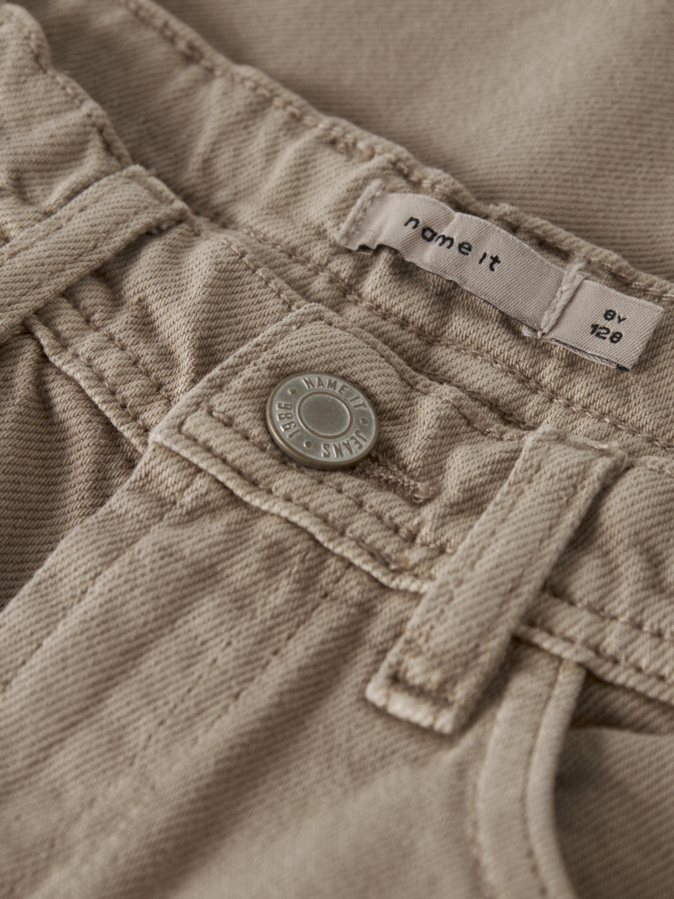 Cool twill jeans i en beige vask fra Name it. Disse jeans har en baggy pasform og et fedt skater look. Bukserne kan justeres i størrelsen indvendig.