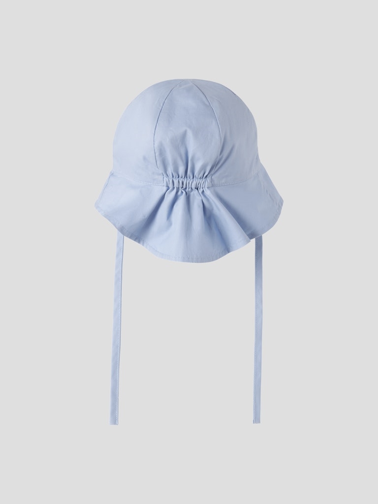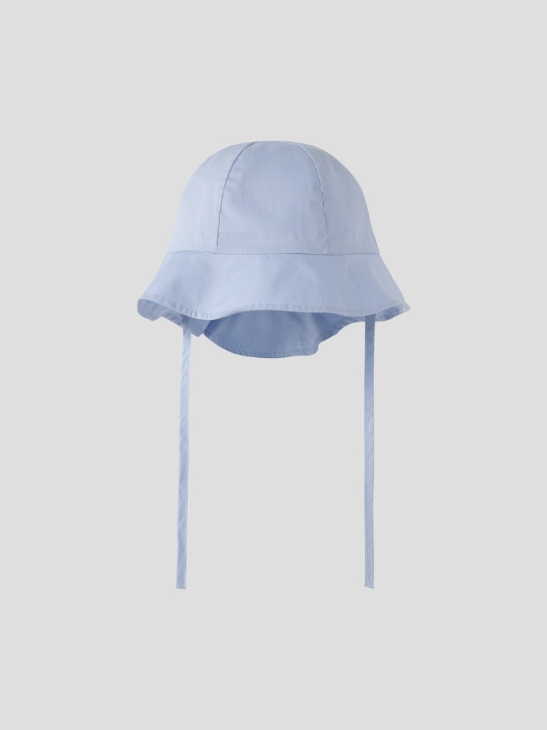 Lækker solhat fra Name it med UPF50+, beskyttelse mod UVA og UVB. Solhatten er i en pæn farve og har snører som kan bindes under hagen.
