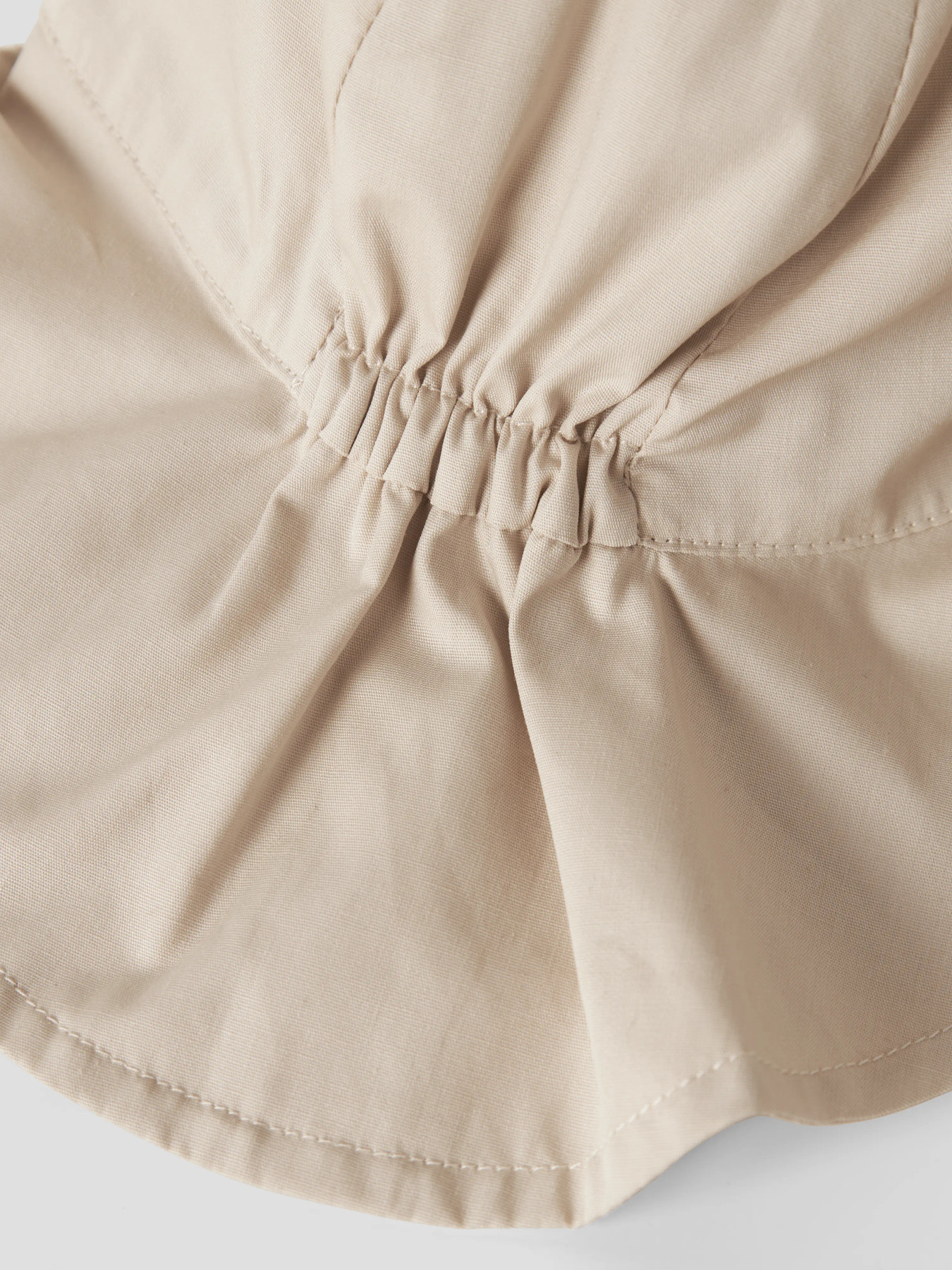 Lækker solhat fra Name it med UPF50+, beskyttelse mod UVA og UVB. Solhatten er i en pæn farve og har snører som kan bindes under hagen.
