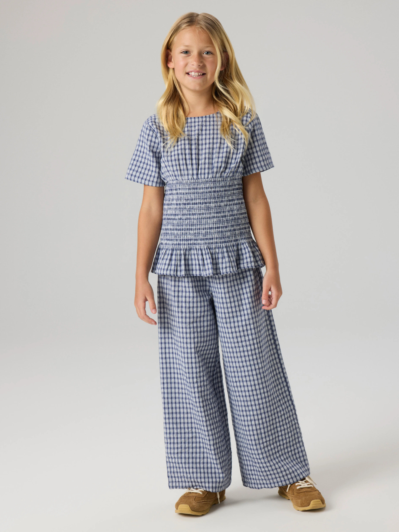 Tendy bukser, der sikrer en blød og behagelig fornemmelse hele dagen. Det vævede materiale har et tydeligt krydsmønster og en let tekstureret overflade, som giver et rent og klassisk look.