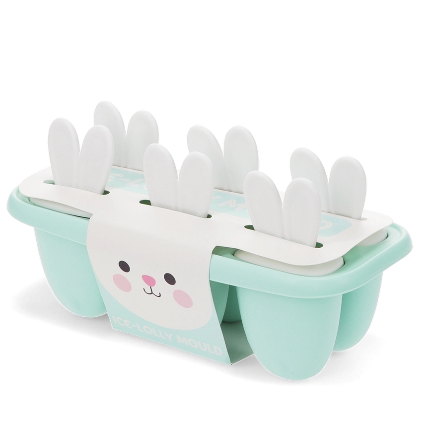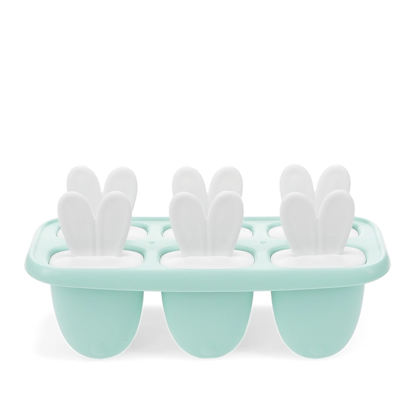 Sød og sjov isform med seks rum i teal, med seks hvide ispinde. Ispindene har håndtag formet som kaninører, perfekt tilpasset børnehænder. Deres yndlingsjuice, saft eller yoghurt kan nemt hældes i formens rum og derefter fryses for at skabe lækre sommergodter.