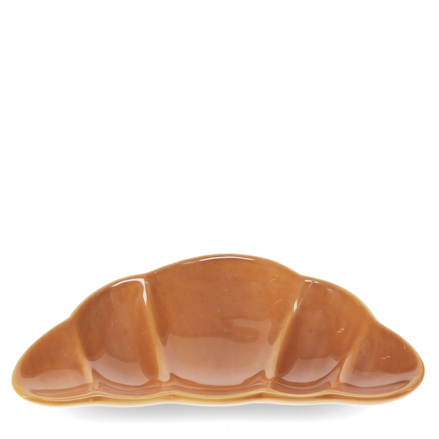Dekorativt keramisk nipsfad med en legesyg croissantform og -design. En fantastisk tilføjelse til sminkeborde eller gangborde, der tilbyder et sjovt og praktisk sted til små genstande: smykker (ringe, øreringe osv.), nøgler, mønter og mere.