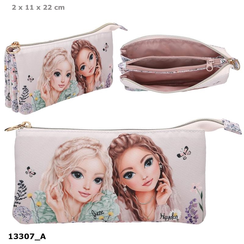 Sødt og praktisk penalhus fra TOPModels skønne LEOHEART serie i smuk rosa med sødt motiv af TOPModellen Hayden med trendy leo-mønstret top og søde, applikerede sløjfer i håret. Penalhuset er opdelt i tre rum og fyldt med alt, hvad man skal bruge til at tegne og skrive med i skolen og derhjemme: 2 blyanter, 1 saks, 1 lineal, 1 viskelæder, 1 blyantspidser, 18 farveblyanter og 18 tuscher samt en lille pung med velcro. Tip: Personliggør dit penalhus ved at tilføje et vedhæng i lynlåsen. Mål: 7,5 x 13 x 20 cm.