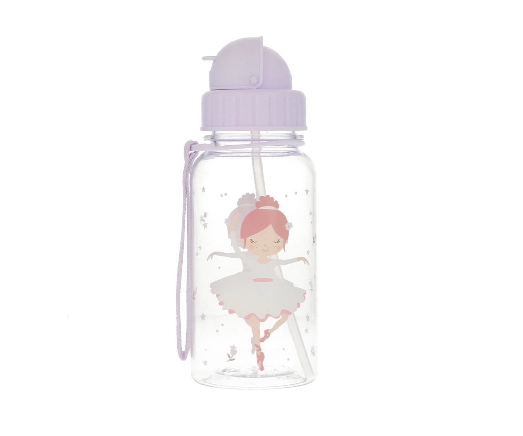 Tritan plastflaske, eksklusiv for Tutete. Flasken har et sammenfoldeligt silikonesugerør, der automatisk popper op, når låget åbnes, og er ideel til institutions brug eller til at have med på tur. Den har et langt håndtag, som gør det muligt at hænge den på en rygsæk eller barnevogn.