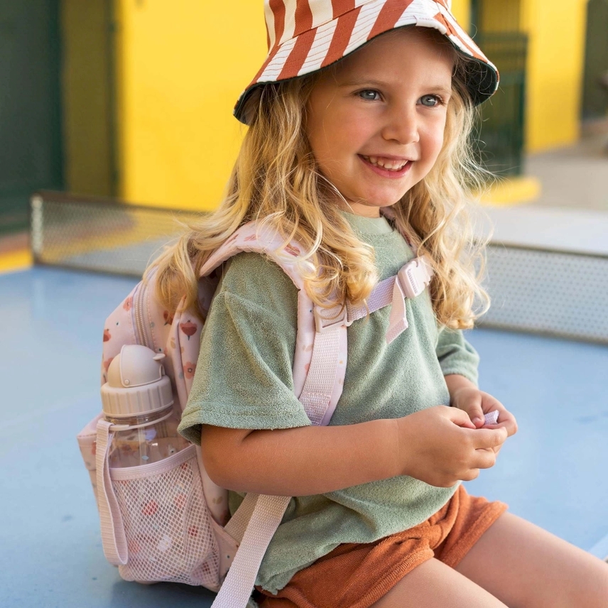 Tritan plastflaske, eksklusiv for Tutete. Flasken har et sammenfoldeligt silikonesugerør, der automatisk popper op, når låget åbnes, og er ideel til institutions brug eller til at have med på tur. Den har et langt håndtag, som gør det muligt at hænge den på en rygsæk eller barnevogn.