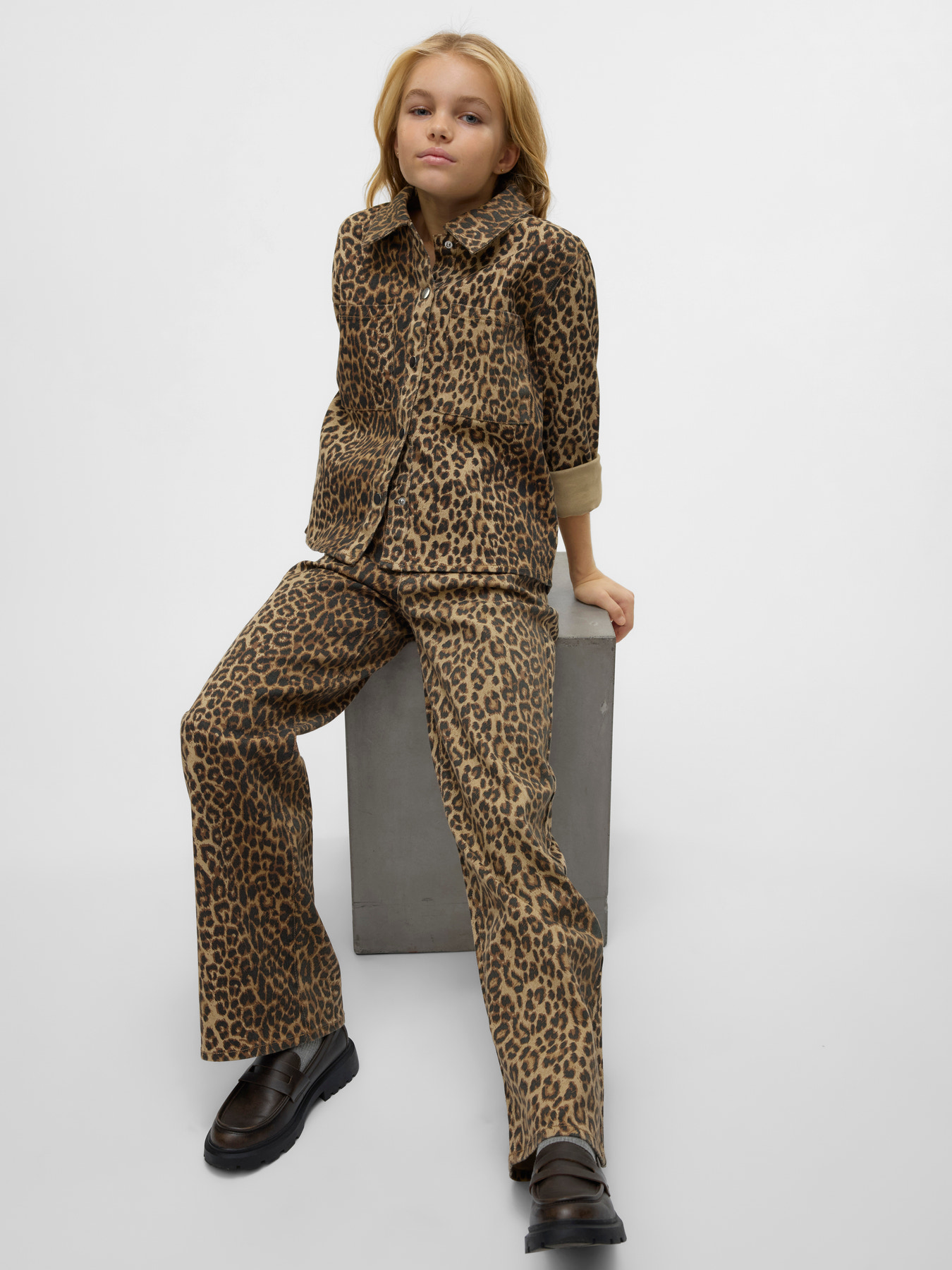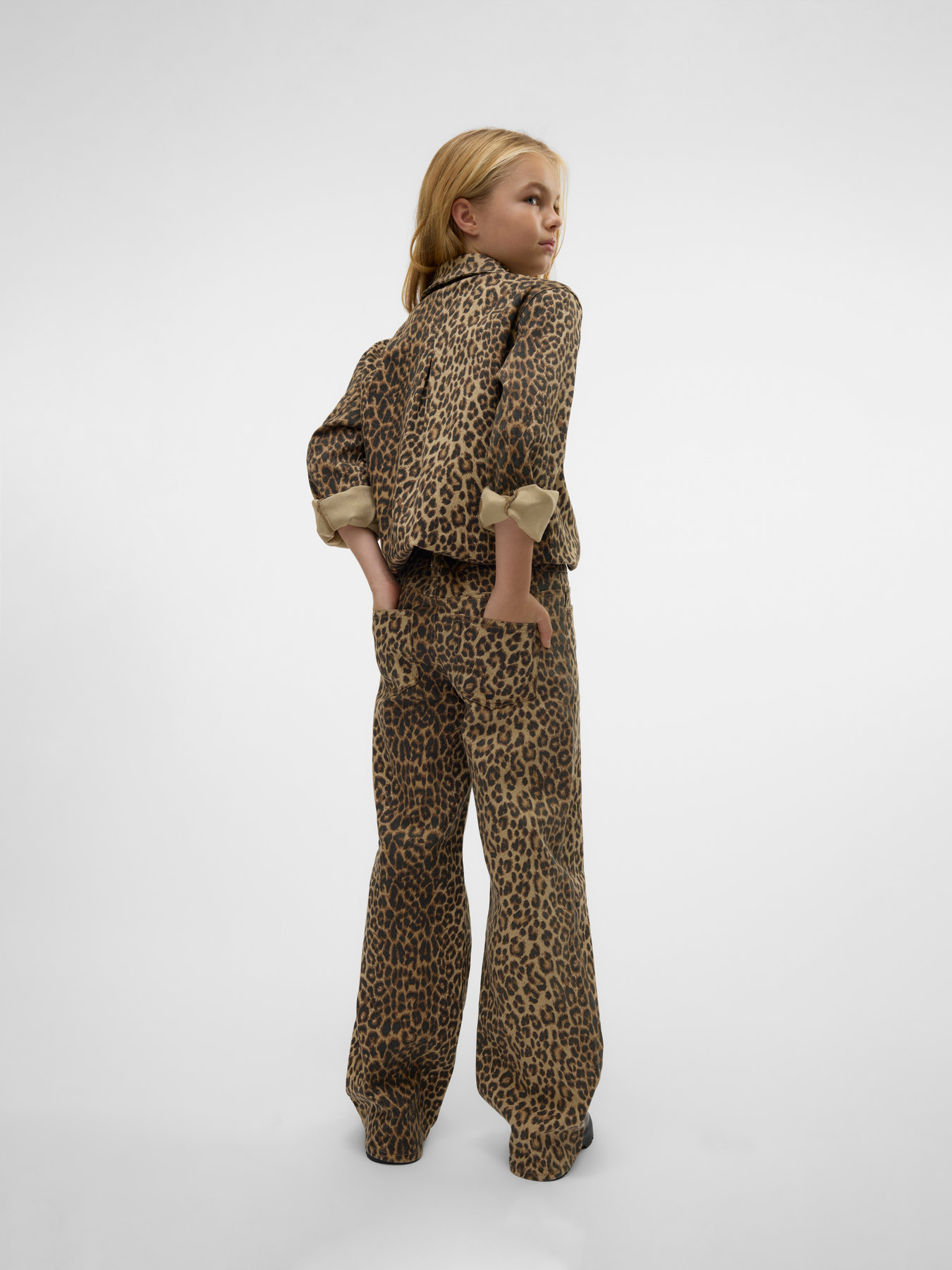 Sejeste jeans fra Vero Moda girl. De er med høj talje, brede ben og super cool leo print. De er med bæltestropper og lommer, i mega lækker kvalitet.